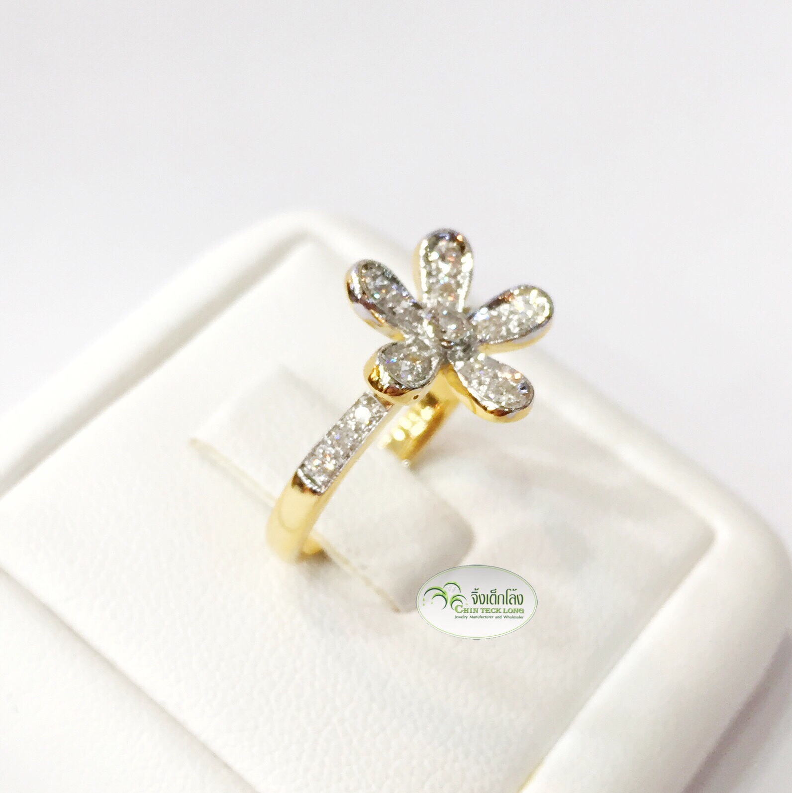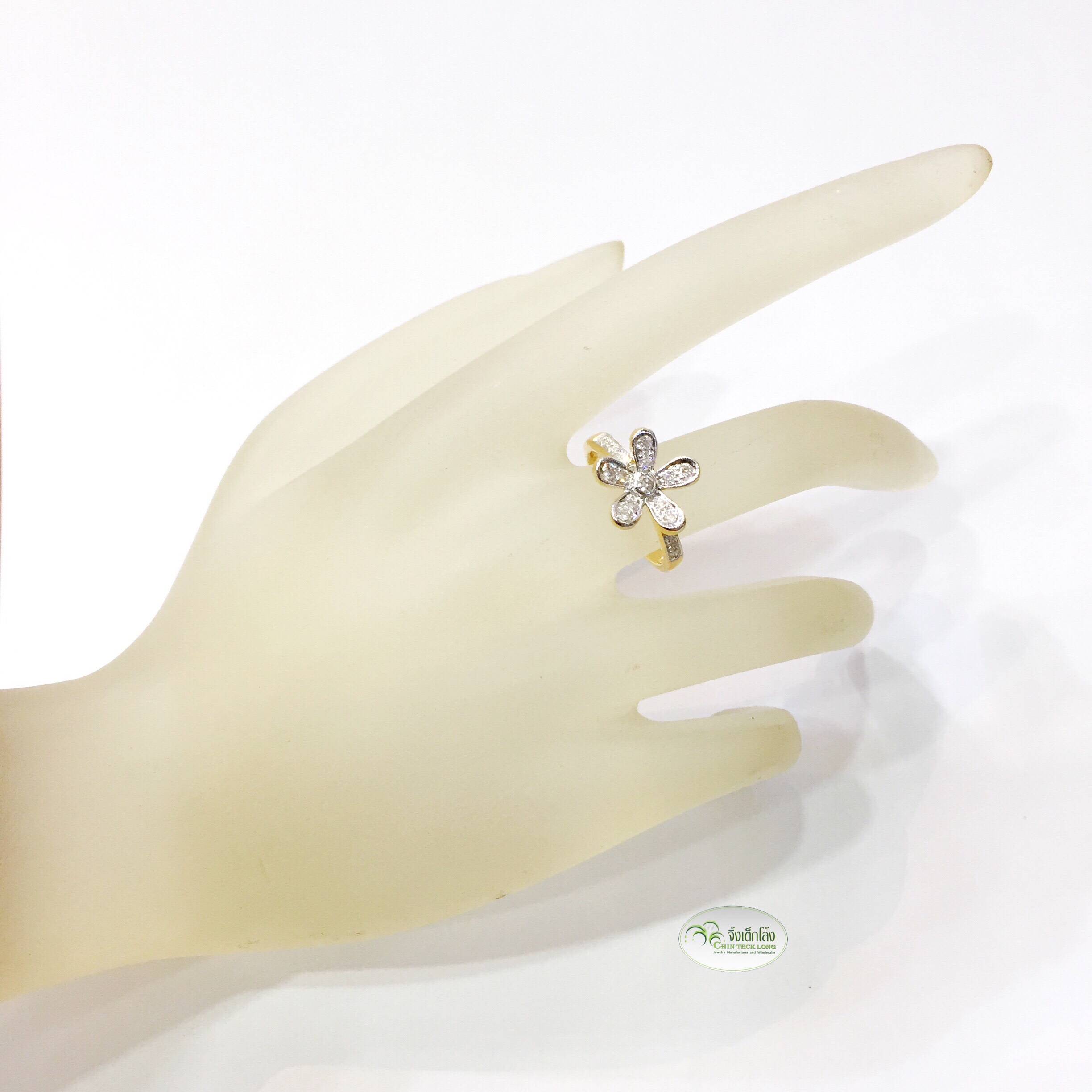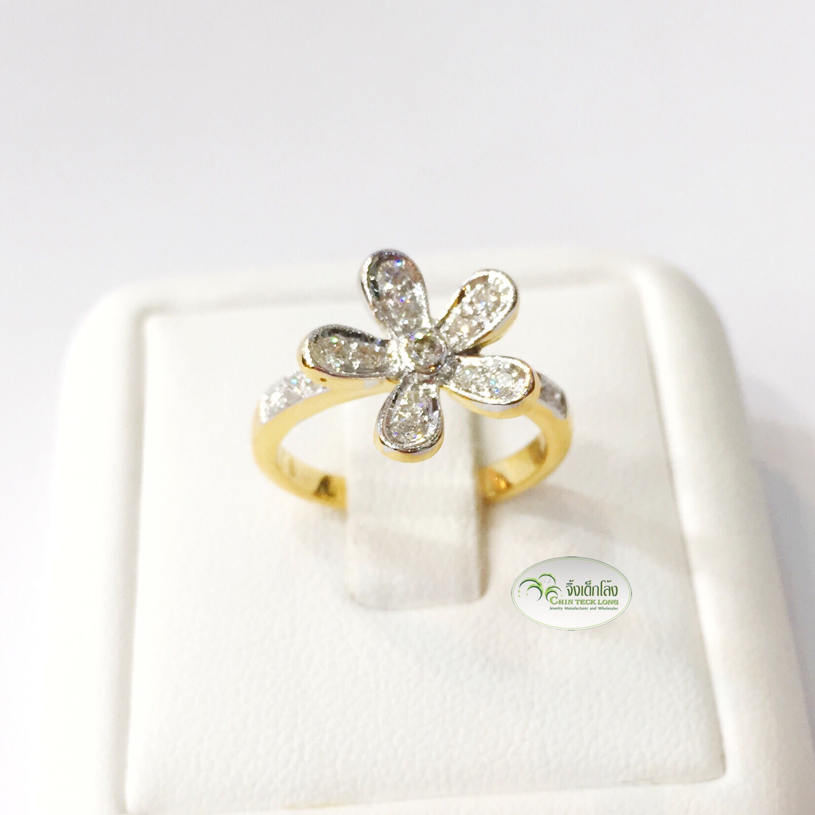 แหวนเพชรดอกไม้ 1.3 ซม. ทองคำแท้ เพชรขาวไม่มีตำหนิ น้ำ 97-98 , IF-VVS