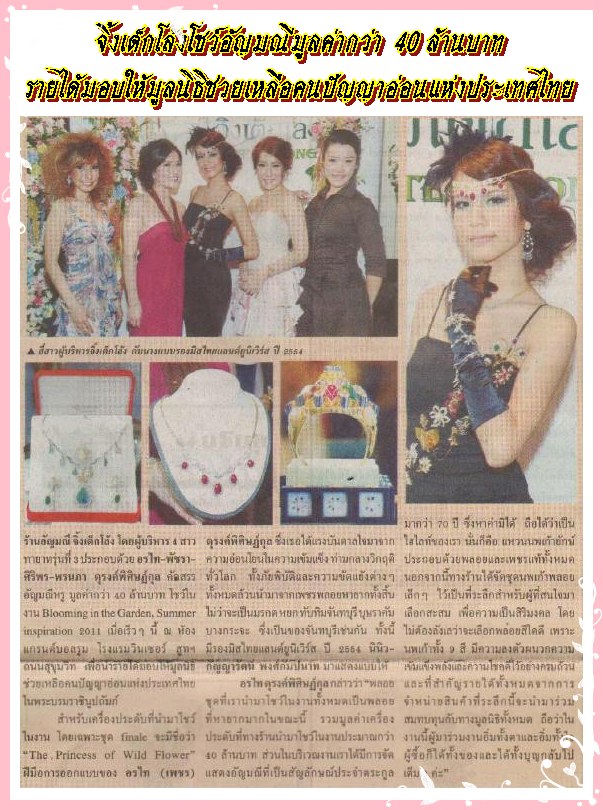 จิ้งเต็กโล้งโชว์อัญมณีมูลค่ากว่า 40 ล้านบาท รายได้มอบให้มูลนิธิช่วยเหลือคนปัญญาอ่อนแห่งประเทศไทย