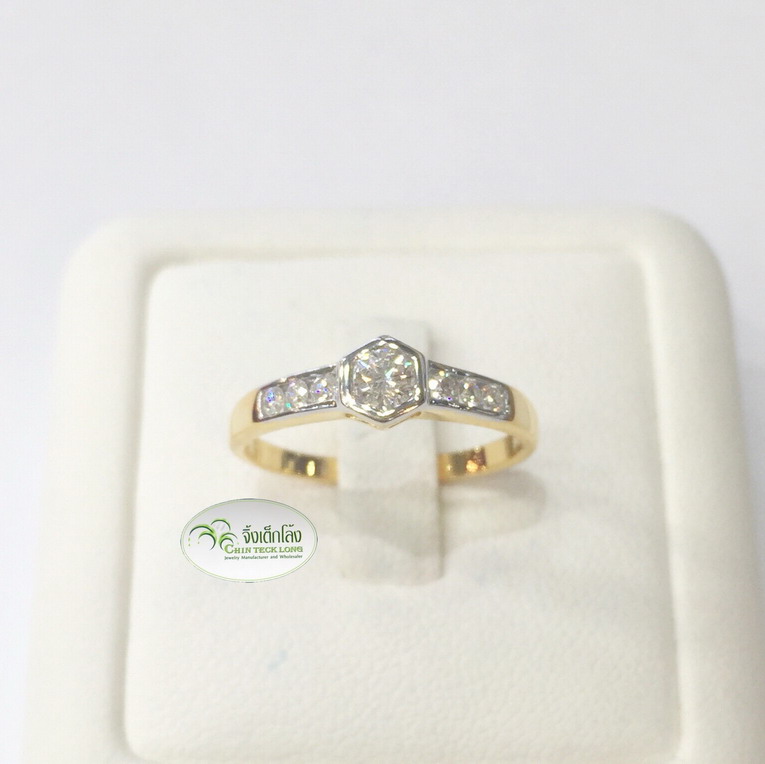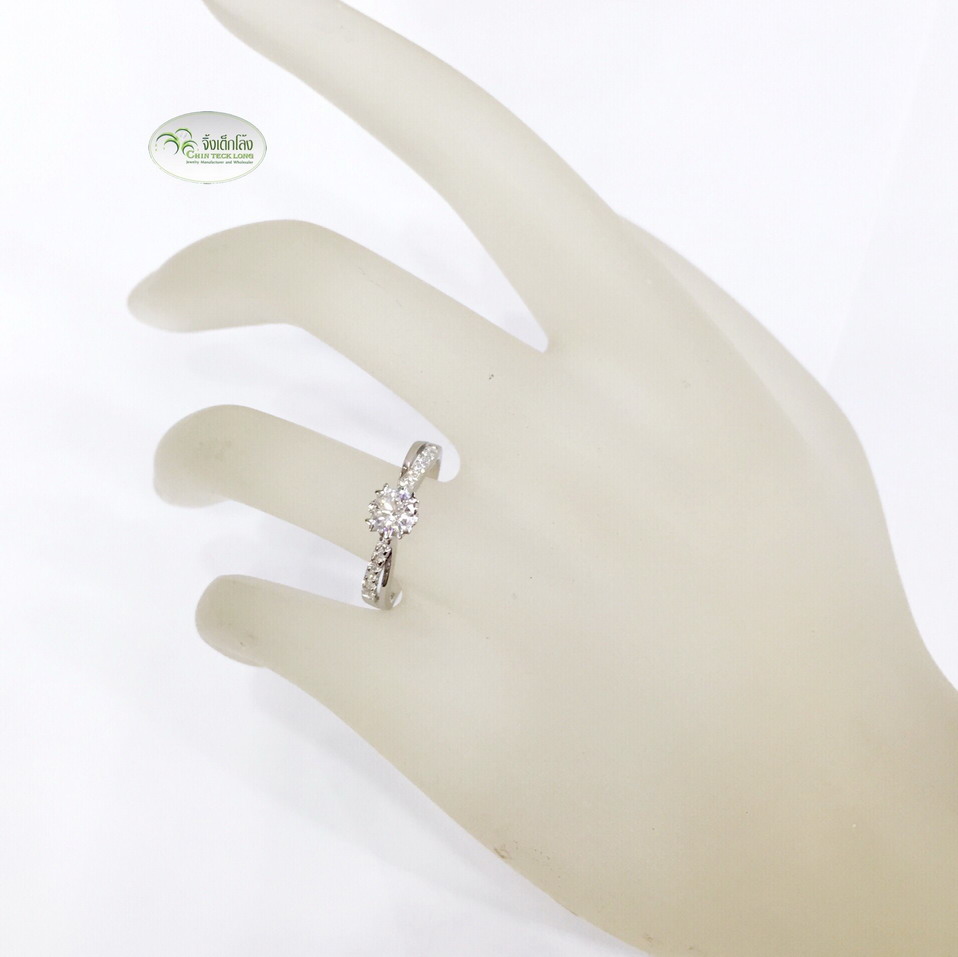 เพชรที่ใช้จะใหญ่ได้ถึง 0.20 กะรัต ซึ่งไม่เช่นนั้น ถ้าเพชรใหญ่ขึ้นมาอีก ตัวเรือนแหวนด้านหน้าเพชรจะต้องหนาขึ้นมาลักษณะนี้ค่ะ