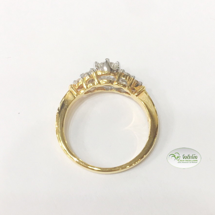 ตัวเรือนวงนี้ไซส์ใหญ่ถึง 0.40 กะรัตทีเดียวค่ะ ความจริงที่เขียนหัวข้อว่าไม่ชูมาก มองจากภาพแล้ว เหมือนตัวเรือนไม่ได้ไม่ชูนะคะ ความจริงดีไซน์ออกมาชูตามปกติค่ะ แต่การออกแบบของวงนี้ไล่ระดับเพชรเม็ดถัดไปให้สูงเกือบพอดีกับเพชรเม็ดกลางเลย และต่อมาก้านตัวเรือนก็จะต้องหนาขึ้นกว่าปกติให้รับกับเพชรเม็ดถัดมาไปด้วยค่ะ ไม่อย่างนั้นแหวนของเราจะออกมาเป็นภาพถัดมานี้ค่ะ