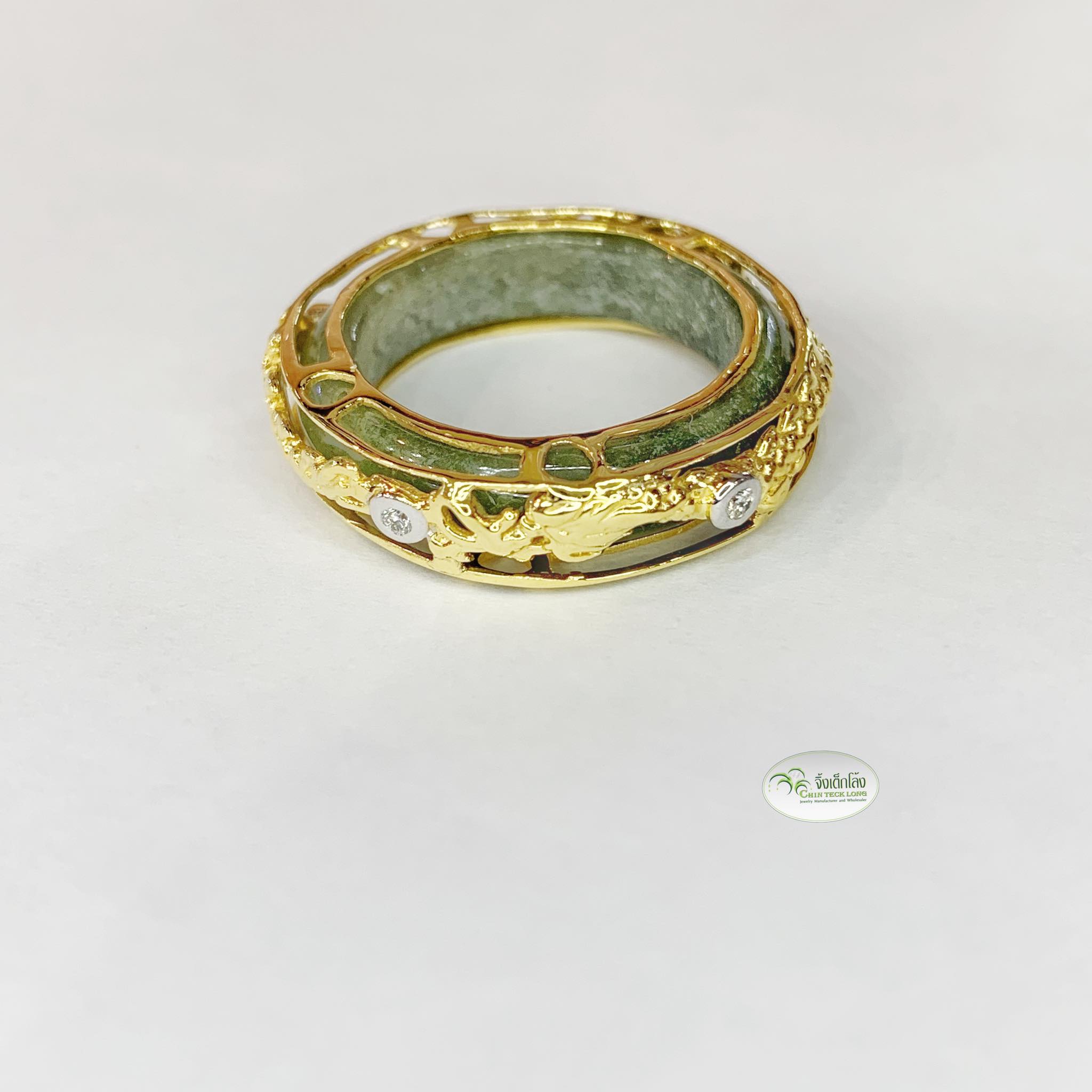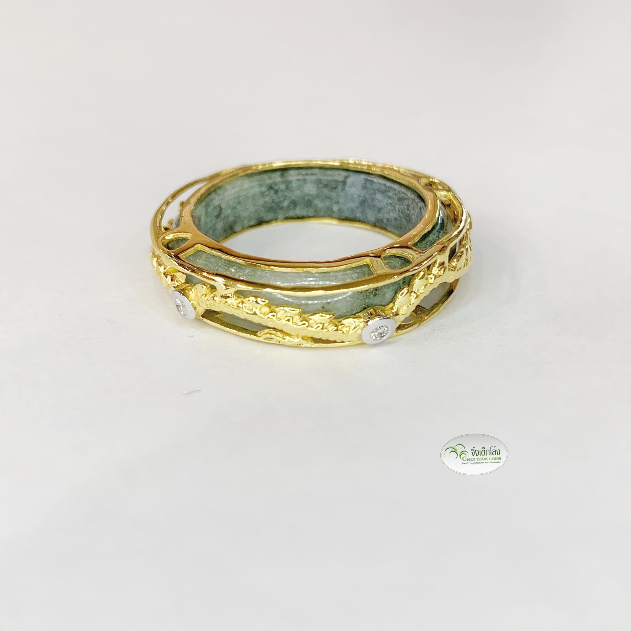 แหวนหยกพม่าหุ้มทองลายมังกร/พญานาค หน้ากว้าง 0.5 ซม. ทองคำแท้ เพชรขาวไม่มีตำหนิ น้ำ97-98 IF-VVS