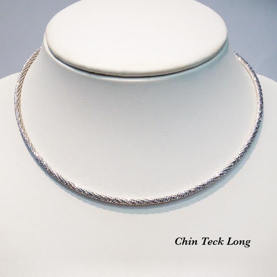 โชคเกอร์อิตาลีทองคำขาว18K ลายกลม หนัก 17.62 g. สีขาวล้วน 18 นิ้ว
