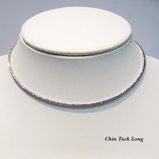 โชคเกอร์อิตาลีทองคำขาว18K ลายกลม หนัก 23.68 g. สีขาวล้วน 16 นิ้ว