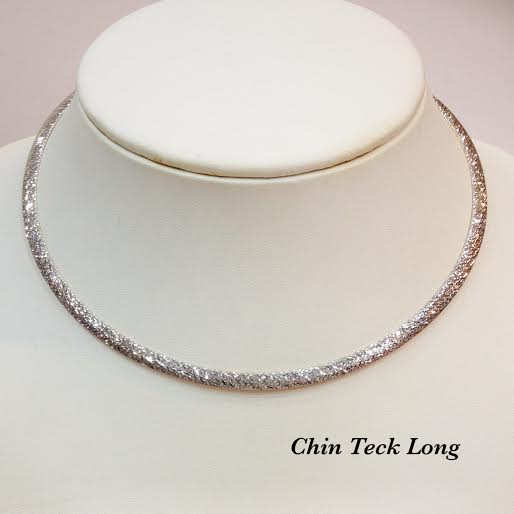 โชคเกอร์อิตาลีทองคำขาว 18K ลายแบน หนัก 18.29 g. 2 กษัตริย์ 18 นิ้ว หนา 4 มม