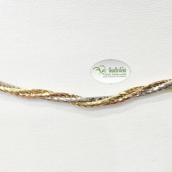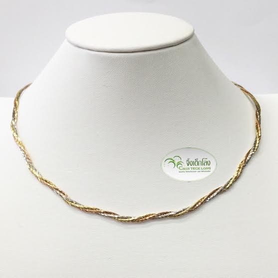 โชคเกอร์อิตาลีทองคำขาว 18K ลายเปีย หนัก 13.06 g. 3 กษัตริย์ 16 นิ้ว หนา 3 มม.