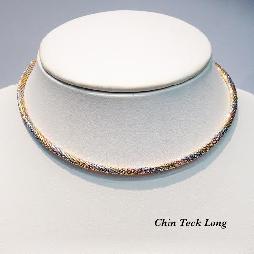 โชคเกอร์อิตาลีทองคำขาว 18K ลายกลม หนัก 28.20 g. 3 กษัตริย์ 16 นิ้ว