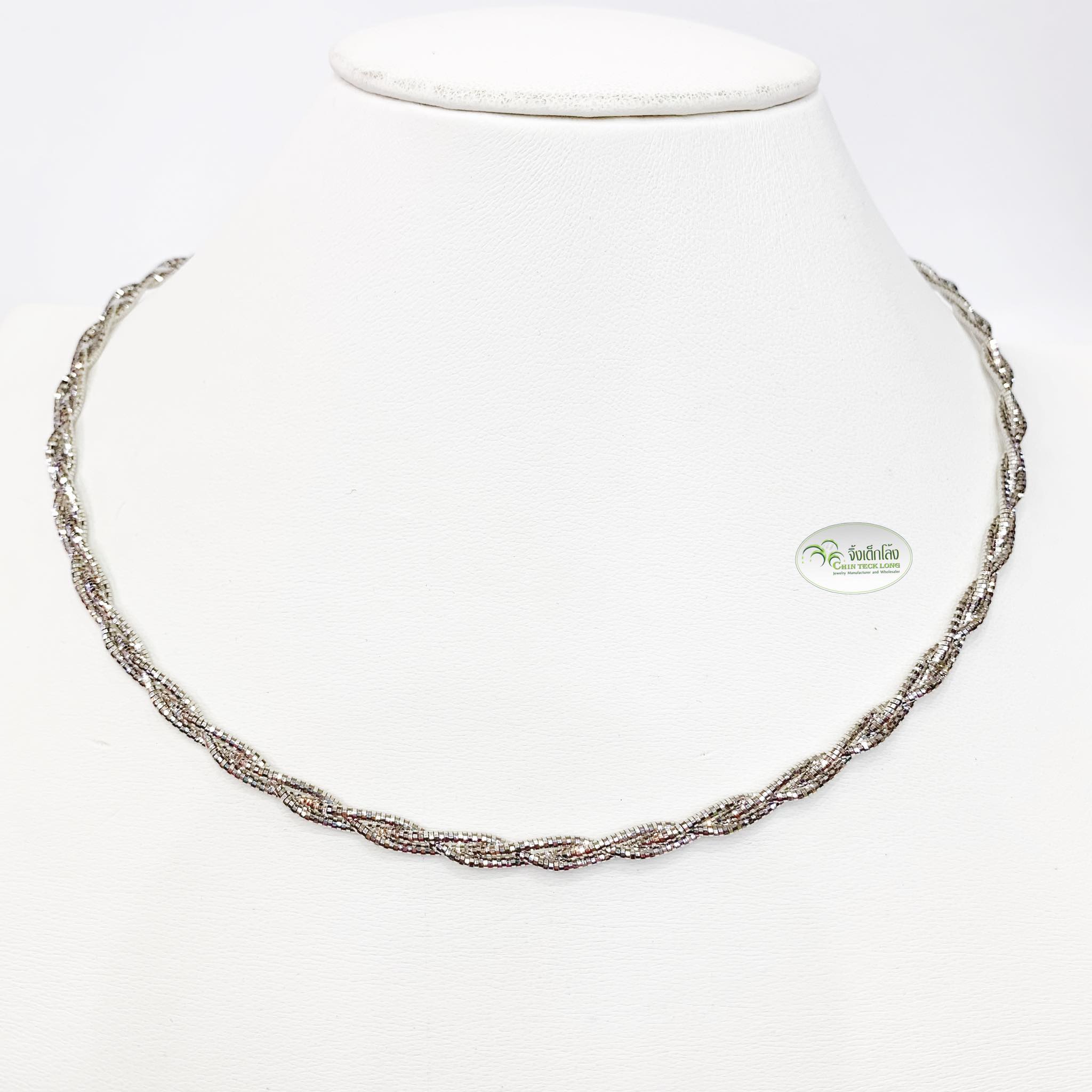 โชคเกอร์อิตาลีทองคำขาว 18K ลายเปีย 15.54 g. ยาว 16 นิ้ว สีขาว หนา 0.5 ซม.