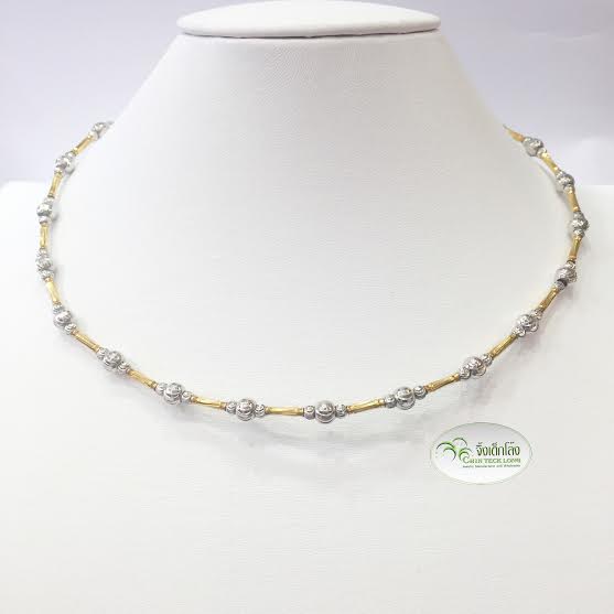 CHOK16G. โชคเกอร์อิตาลีทองคำขาว18K ลายกลม หนัก 18.85 g. 2 กษัตริย์ ยาว 16 นิ้ว ITG1885