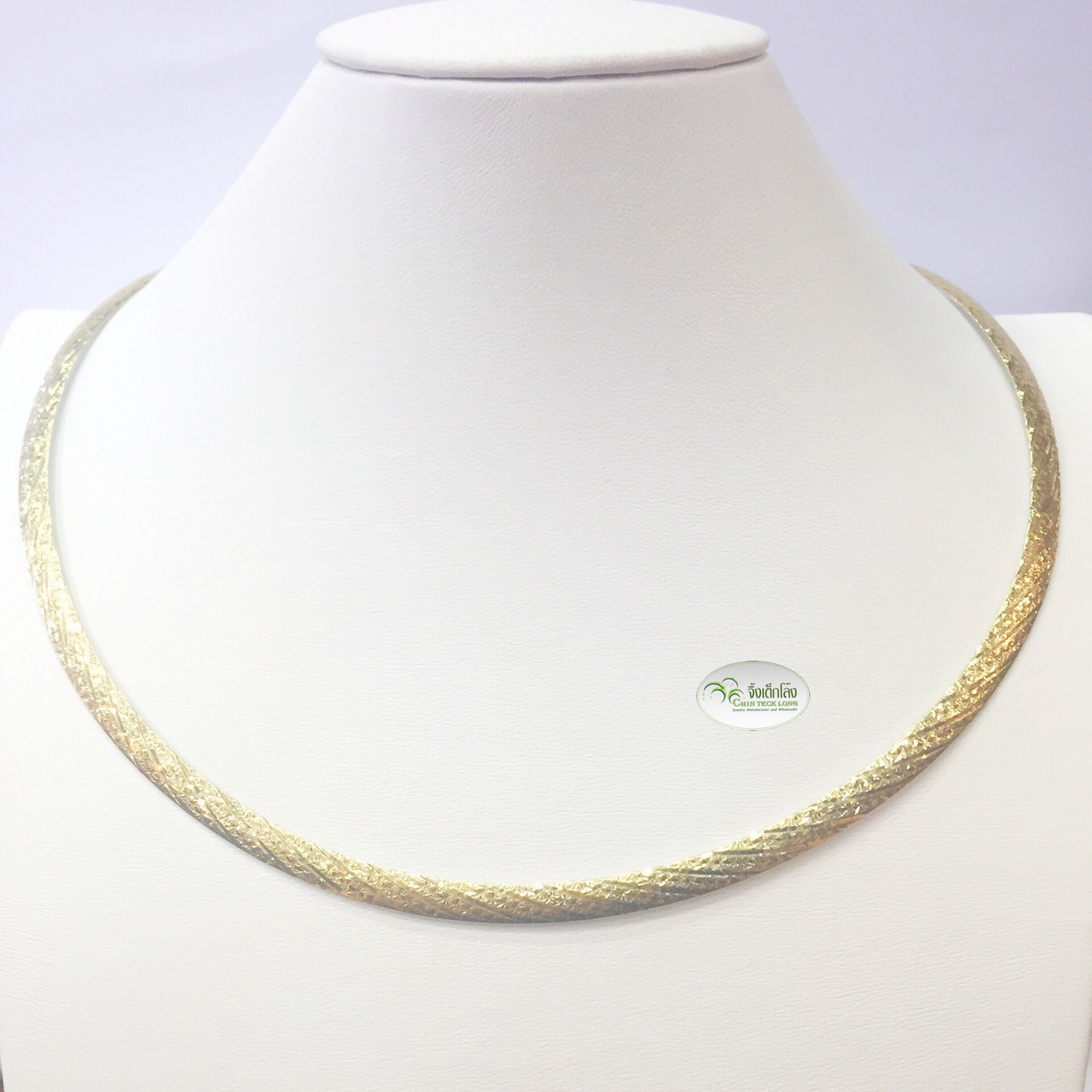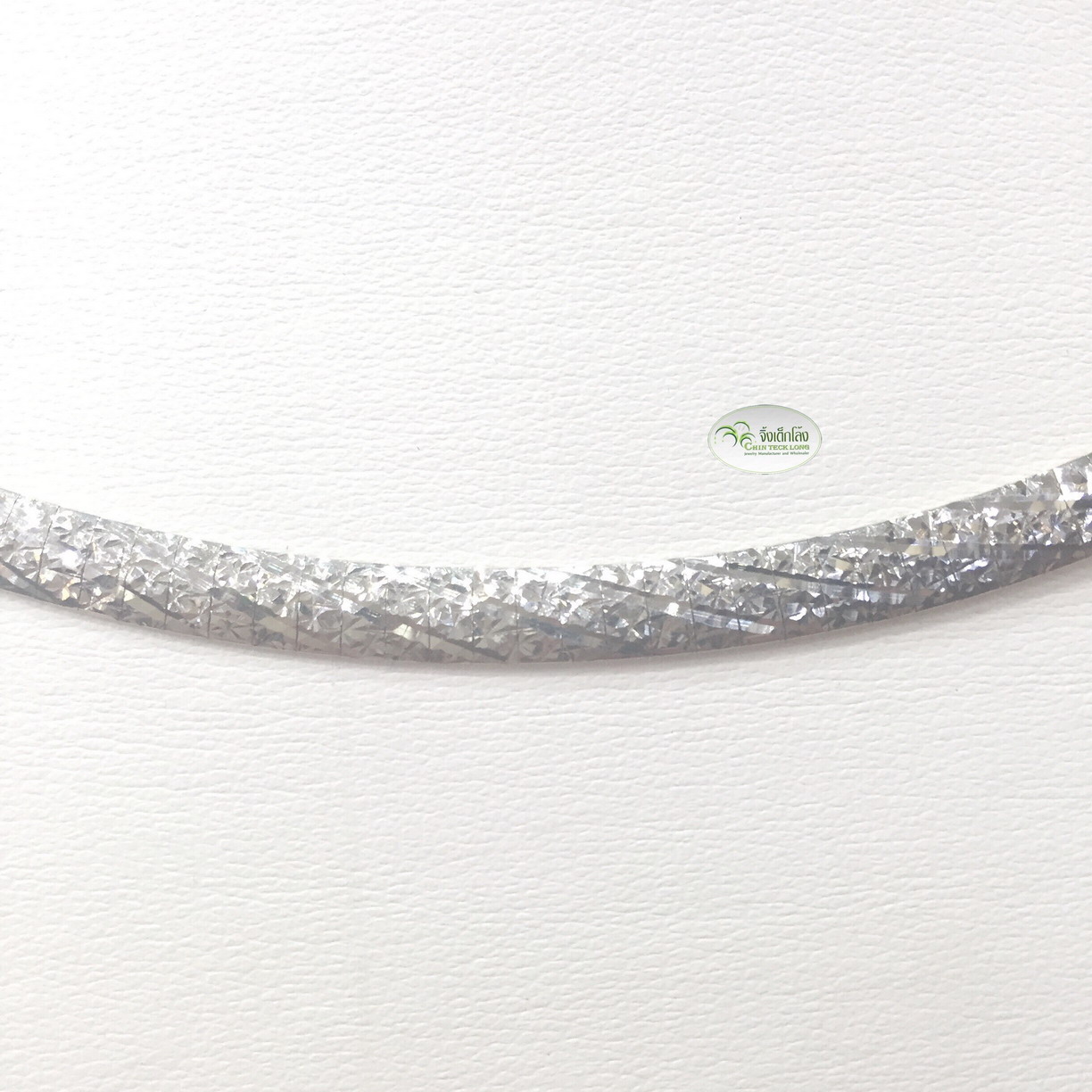 โชคเกอร์อิตาลีทองคำขาว 18K ลายแบน หนัก 25.10 g. 2 กษัตริย์ 16 นิ้ว หนา 5 มม