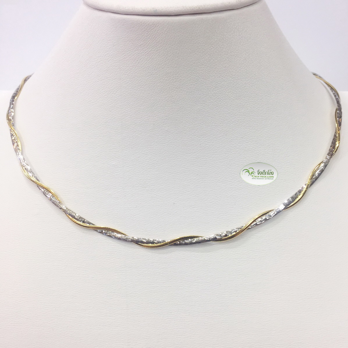 โชคเกอร์อิตาลีทองคำขาว 18K ลายเปีย หนัก 9.86 g. 2 กษัตริย์ 18 นิ้ว