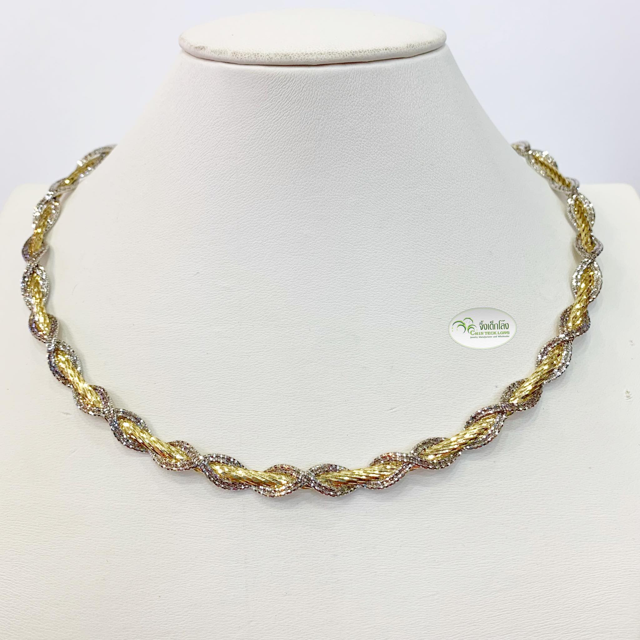 โชคเกอร์อิตาลีทองคำขาว 18K ลายเปีย หนัก 32.61 g. 2 กษัตริย์ 18 นิ้ว